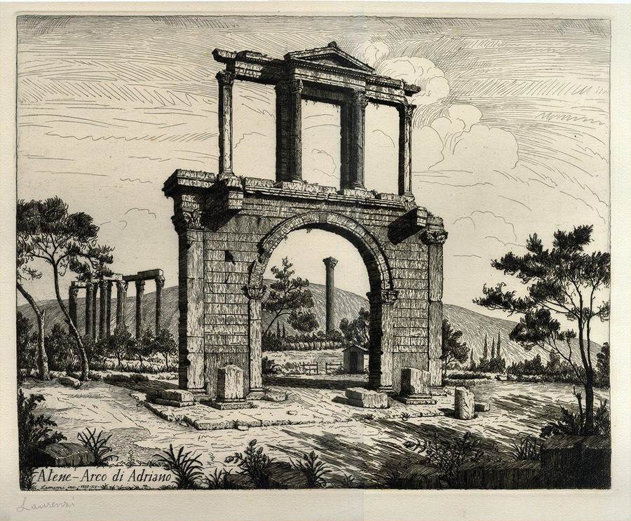 nell’inciso al centro: Goering è andato a Capri / 19 gennaio.sotto a sinistra: Atene - Arco di Adriano / Laurenzi inc. - 1937 - XV - a matita in basso a sinistra: Laurenzi
