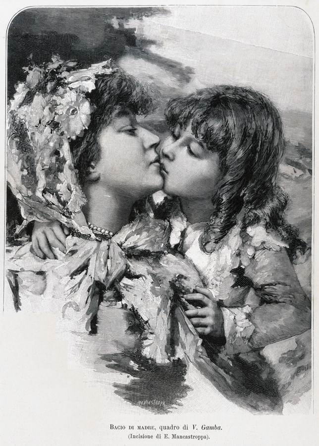 1891 - Bacio di madre, quadro di V. Gamba (Incisione di E. Mancastropa), L'Illustrazione Italiana, Milano, Anno XVIII - 1° semestre, p. 149.