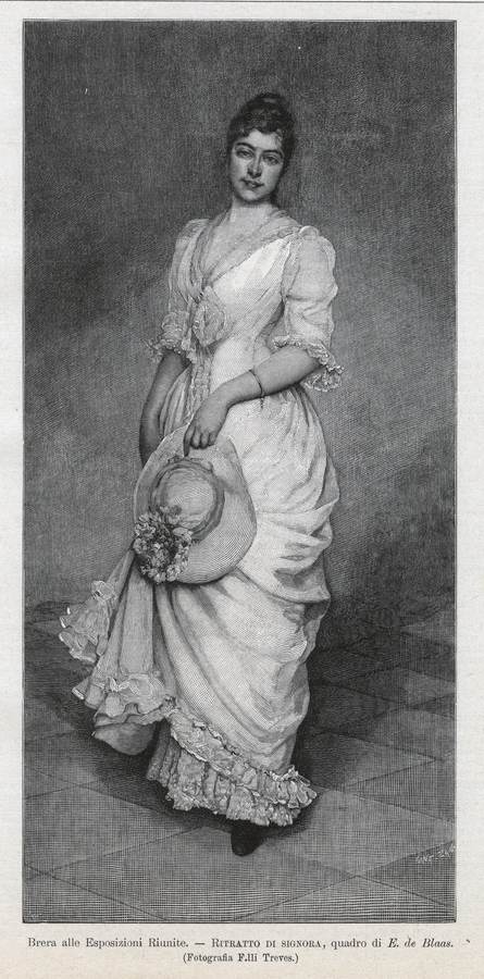 1894 - Brera alle Esposizioni Riunite - Ritratto di Signora, quadro di E. de Blaas (Cant. Zano. inc.), L'Illustrazione Italiana, Milano, Anno XXI - 2° semestre, p. 97.