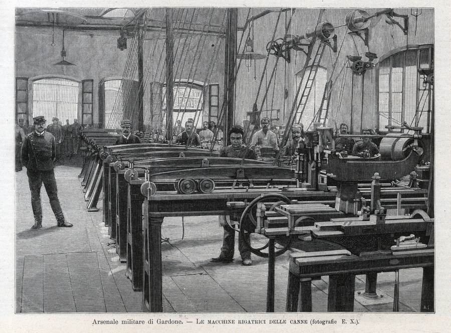 1894 - L'Arsenale Militare di Gardone - Le macchine rigatrici delle canne (M. S. inc.), L'Illustrazione Italiana, Milano, Anno XXI - 2° semestre, p. 137.