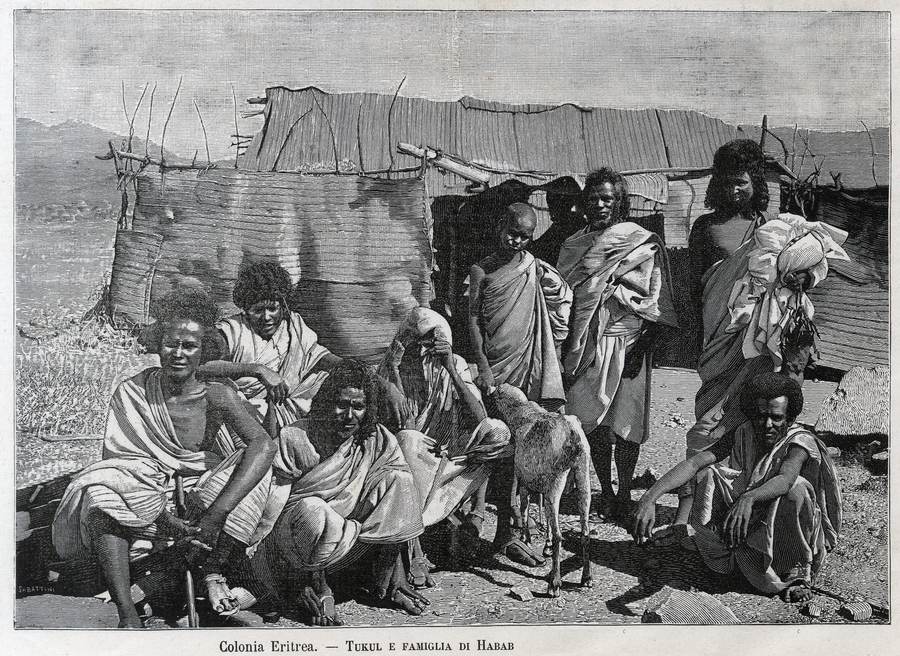 1891 - Colonia Eritrea - Tukul e famiglia di Habab (Sabattini), L'Illustrazione Italiana, Milano, Anno XVIII - 1° semestre, p. 4.