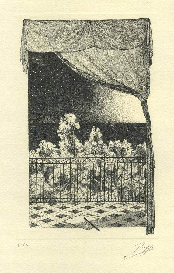| Soggetti / Temi | Notturno, terrazza, Tenda, Alberi, mare |