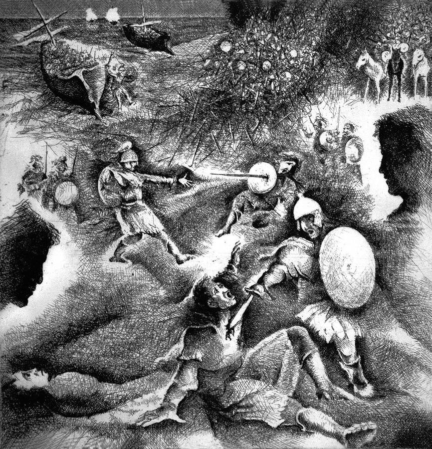 2013 - (cartella) Eneide - dodici acqueforti di Piero Cesaroni e una introduzione di Giuseppe Appella, 2013, Roma, il feltro, esemplare ad personam: 3/16.
