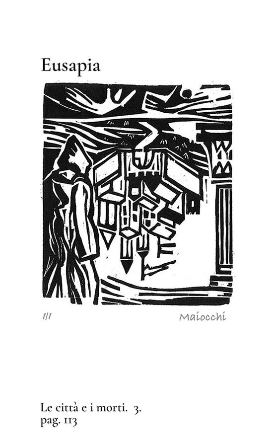 2022 - Le città invisibili, 11 artisti rendono omaggio a Italo Calvino, (Ettore Antonini - Alessia Baraldi - Gregorio Bellodi - Paolo Cabrini - Giovanni Daprà - Edoardo Fontana - Vittorio Giacopini - Luigi Maiocchi - Daniele Roberto Milani - Lucio Passerini - Luciano Ragozzino), raccolta di 55 xilografie con tiratura di 75 esemplari autografati su carta Century Cotton Wove White e 75 esemplari senza firma stampati su carta Cottage Ivory. Museo della stampa e stampa d’arte a Lodi, esemplare: 30/75.
