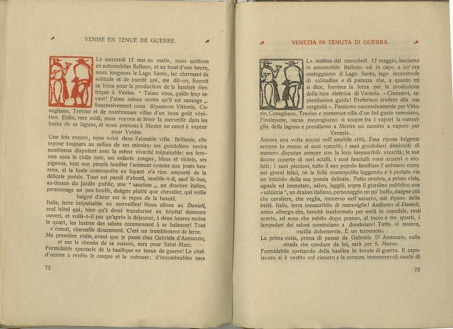 1917 l’opera di Maurice Barrès, Dieci giorni in Italia, testo francese e traduzione, edizione esclusiva per l’Italia, ornata da Emilio Mantelli, ..., Firenze, Libreria Internazionale. p. 72