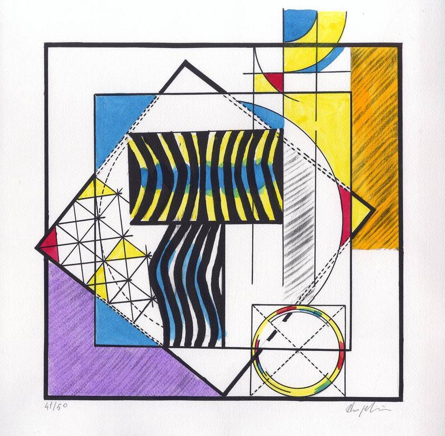 s.d. (cartella) - Geometria interrotta, tre litografie originali acquerellate a mana dall’Autore, mm. 320x380, es. 41/50, Ed. Helicon Art - tir 50 + 10 p.d.a.