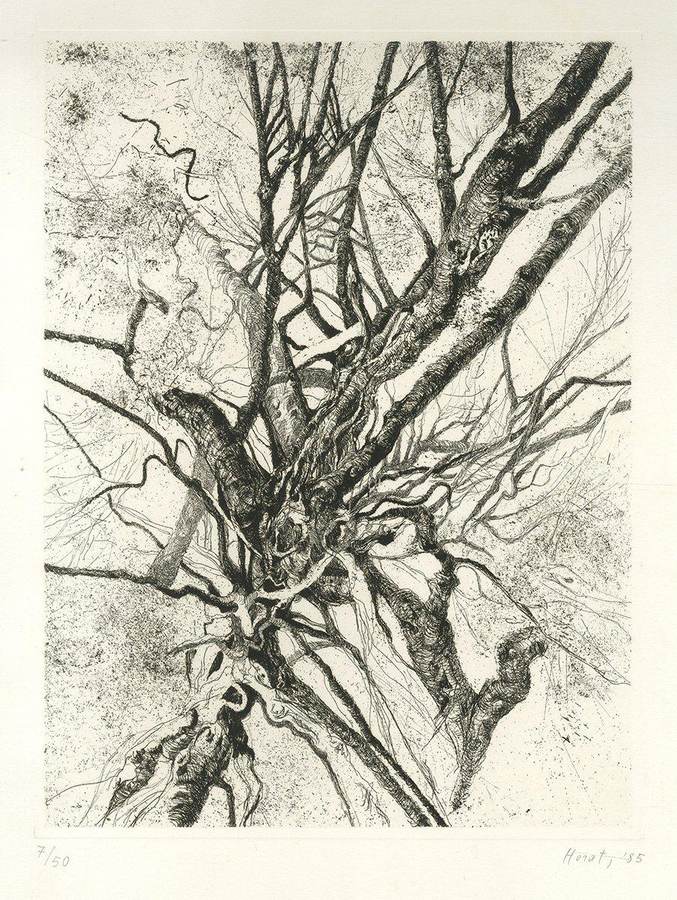 190/193 (cartella) Gli alberi di Horat. Quattro acqueforti di Carla Horat. Testo di Leonardo Sciascia, Venezia, Centro Internazionale della Grafica, 1985, mm. 320x245, tiratura 50 + XX + 10 H.C., es. 7/50
