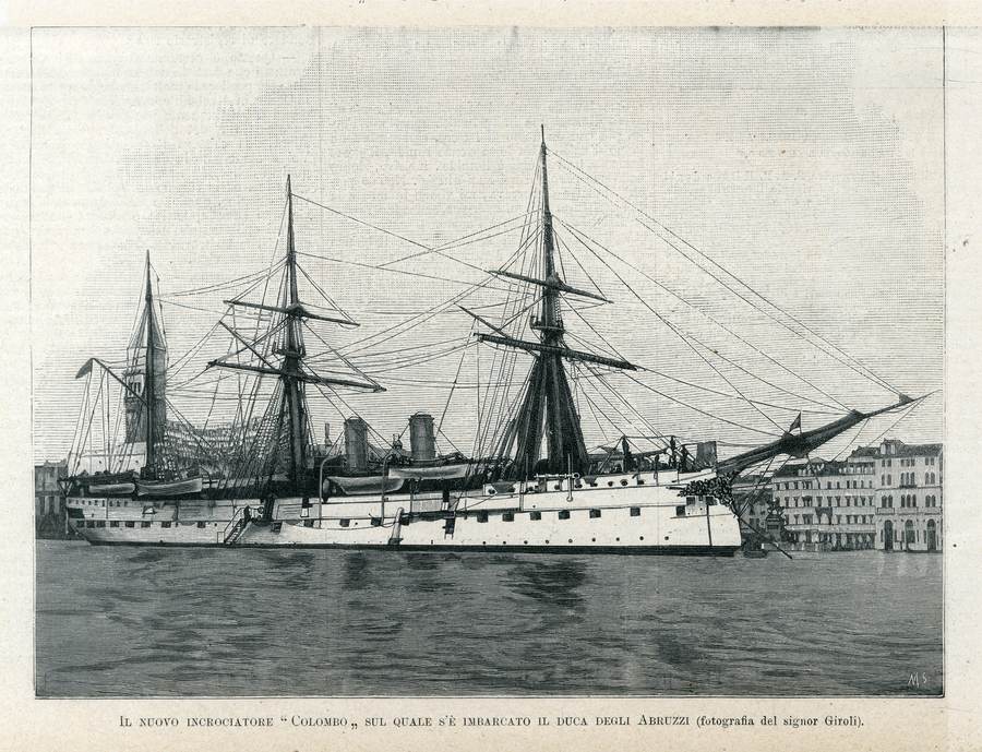 1894 - Il nuovo incrociatore "Colombo" sul quale s'è imbarcato il Duca degli Abruzzi (M. S. inc.) L'Illustrazione Italiana, Milano, Anno XXI - 2° semestre, p. 308.