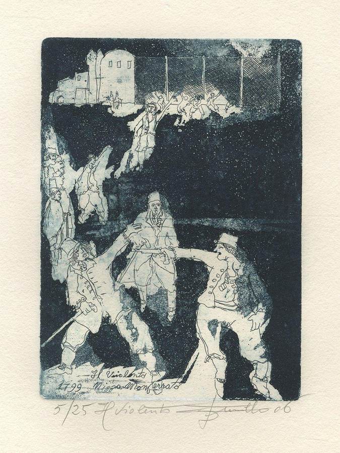 2007 – Guidoni, Grassatori e Tagliagole nelle campagne astigiane. Lettura pittorica di documenti storici. 10 acqueforti di C.F., Reverdito edizioni, Cartella n. 5/25.