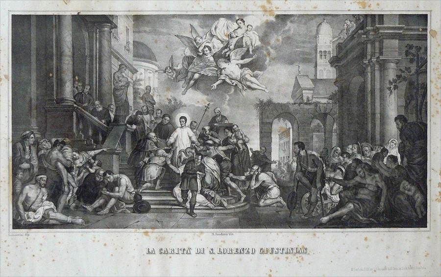 - La Carità di S. Lorenzo Giustinian, mm. 345x560, (Lazzarini dip., M. Fontana dis., M. Fontana Editori…)