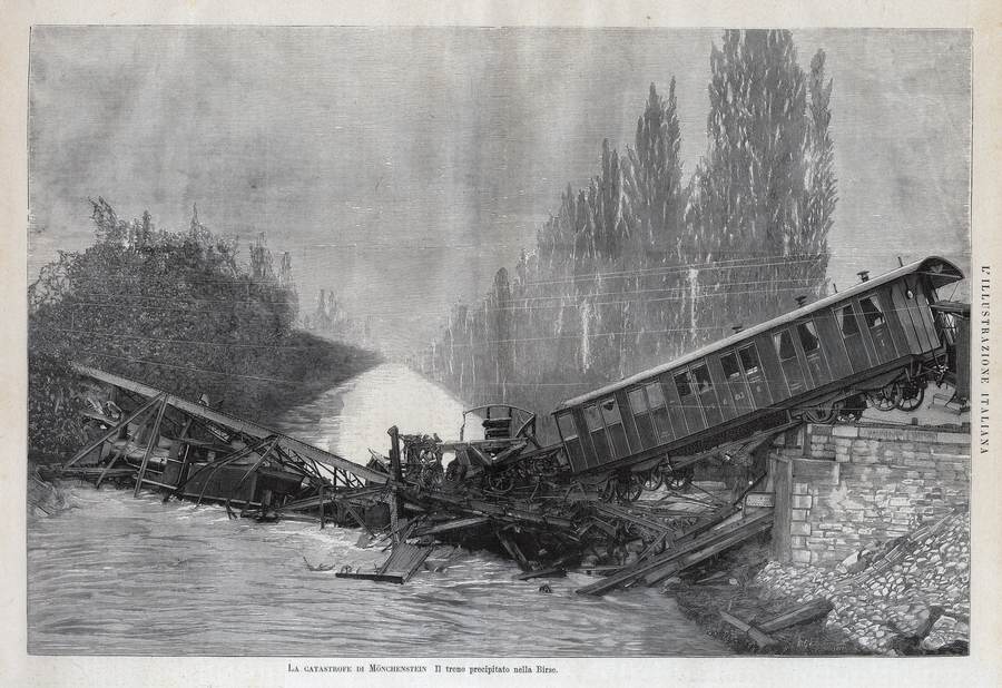 1891 - La catastrofe di Monchenstein - Il treno precipitato nel Birse (MCS), L'Illustrazione Italiana, Milano, Anno XVIII - 1° semestre, p. 405.