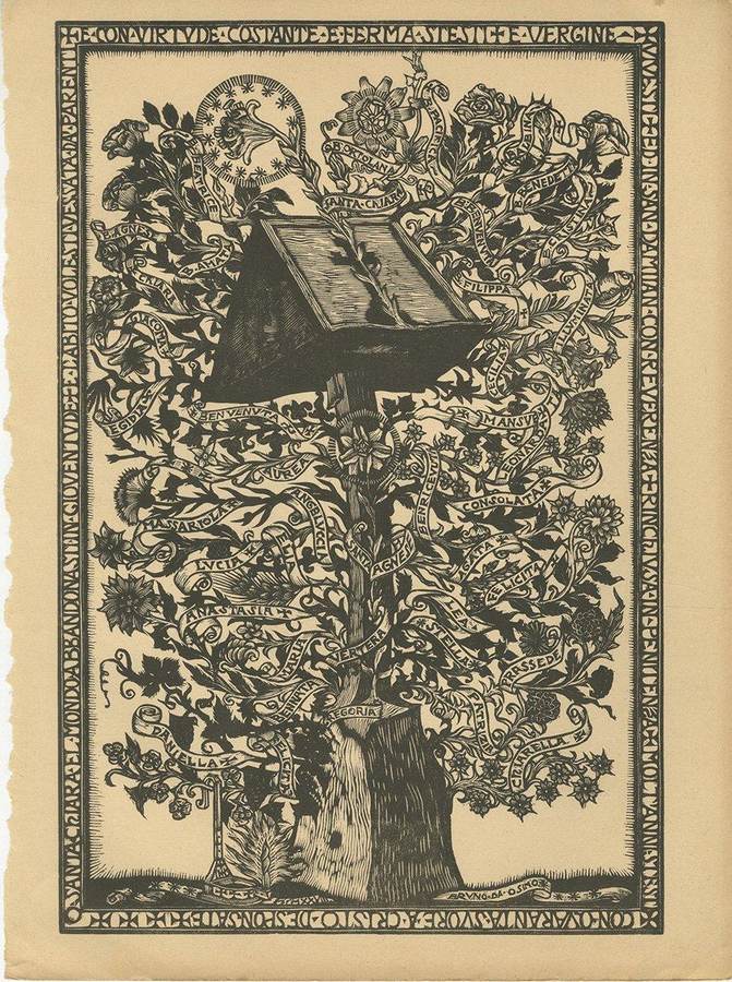 1942 - Ettore Cozzani dedica un numero triplo de L’Eroica, nn. 290/292, ott./dic., al lavoro xilografico di Bruno da Osimo, con una nota di Giorgio Umani, e la pubblicazione in tavole fuori testo, e illustrazioni xilografiche nel testo, precisa che: “Tutte le xilografie di questo quaderno (tranne quella a pag. 27) sono veri e propri originali”.