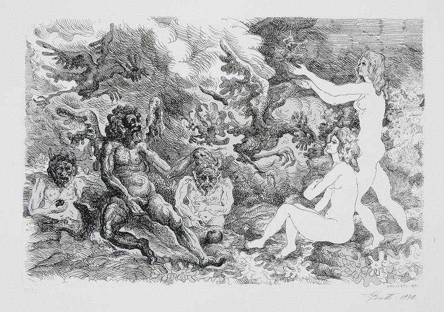 1971 - Giorgio Peretti. 5 acqueforti. Edizioni del Cappello, Verona, 1971, cartella tirata in Trentaquattro copie numerate da Uno a Trentuno e da Prima a Terza, mm. 295x440, esemplare: 9/31.