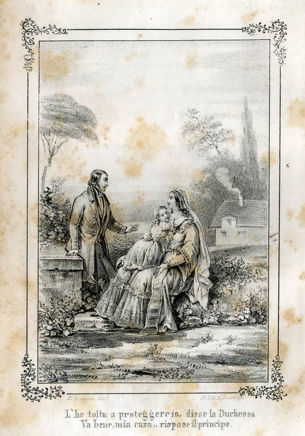 1846 - Disegna in litografia nel 1846, 18 tavole (Lit. Kirchmayr), per il I volume dell’opera: L’assassinio del Duca di Berry la nascita di Enrico V. Duca di Bordeaux la morte di Napoleone, rimembranze del Visconte di Chateaubriand…, Venezia, Tommaso Fontana Tip. Edit., 2 voll., tavv. f.t.