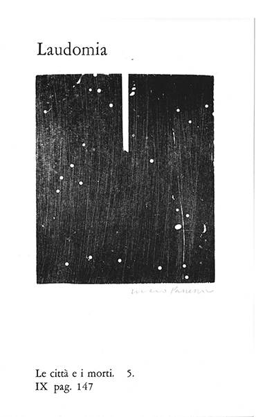 2022 - Le città invisibili, 11 artisti rendono omaggio a Italo Calvino, (Ettore Antonini - Alessia Baraldi - Gregorio Bellodi - Paolo Cabrini - Giovanni Daprà - Edoardo Fontana - Vittorio Giacopini - Luigi Maiocchi - Daniele Roberto Milani - Lucio Passerini - Luciano Ragozzino), raccolta di 55 xilografie con tiratura di 75 esemplari autografati su carta Century Cotton Wove White e 75 esemplari senza firma stampati su carta Cottage Ivory. Museo della stampa e stampa d’arte a Lodi, esemplare: 30/75.