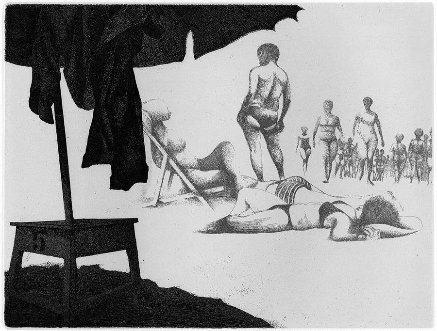 1972 (cartella) - 7 incisioni - le spiaggi d’Italia di Boschi, Firenze, il bisonte edizioni d’arte