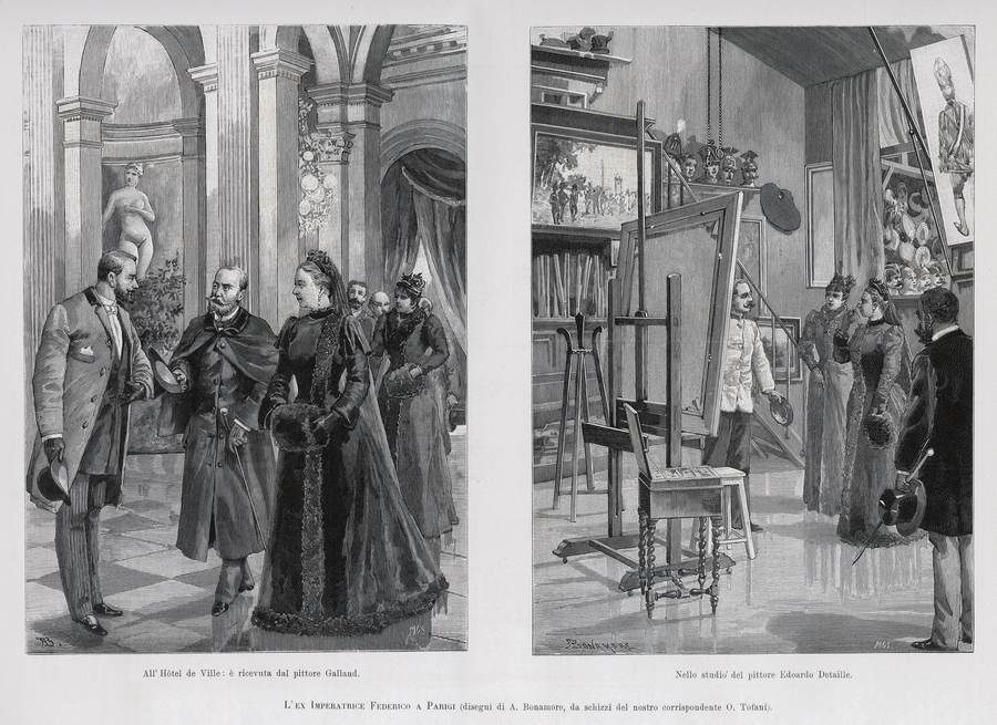 1891 - L'ex Imperatore Federico a Parigi (disegni di A. Bonamore - MCS), L'Illustrazione Italiana, Milano, Anno XVIII - 1° semestre, p. 153.
