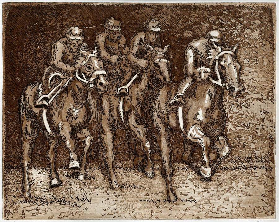 2001 - (cartella) Lo Sport: Pallacanestro, Calcio, Ciclismo, Pugilato, Equitazione, Motociclismo, Canottaggio, Golf, Sci, Tennis, Giavellotto, Scherma, Podismo. (Cartella - 13 opere) esemplari: varie numerazioni 47/60, 10/60 ecc.).