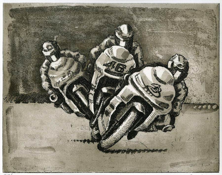 2001 - (cartella) Lo Sport: Pallacanestro, Calcio, Ciclismo, Pugilato, Equitazione, Motociclismo, Canottaggio, Golf, Sci, Tennis, Giavellotto, Scherma, Podismo. (Cartella - 13 opere) esemplari: varie numerazioni 47/60, 10/60 ecc.).