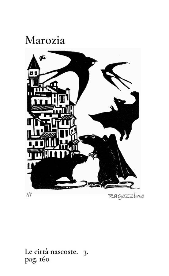 2022 - Le città invisibili, 11 artisti rendono omaggio a Italo Calvino, (Ettore Antonini - Alessia Baraldi - Gregorio Bellodi - Paolo Cabrini - Giovanni Daprà - Edoardo Fontana - Vittorio Giacopini - Luigi Maiocchi - Daniele Roberto Milani - Lucio Passerini - Luciano Ragozzino), raccolta di 55 xilografie con tiratura di 75 esemplari autografati su carta Century Cotton Wove White e 75 esemplari senza firma stampati su carta Cottage Ivory. Museo della stampa e stampa d’arte a Lodi, esemplare: 30/75.