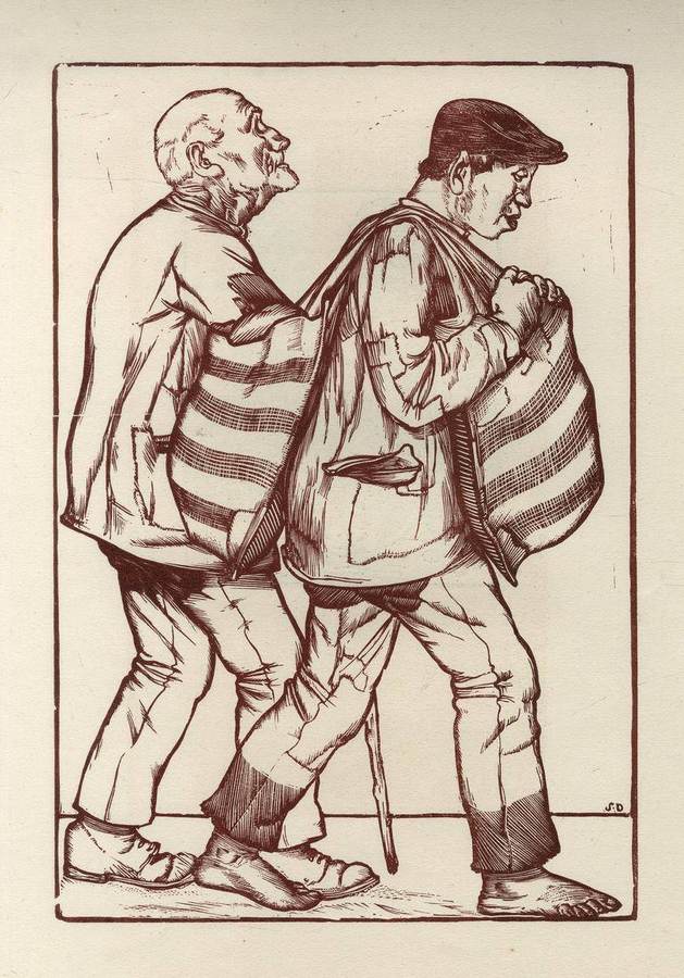 1929, Cesare Ratta, “L’Incisione orignale su legno in Italia”, le xilografie originali: Mendicanti, p. 243 ( sul retro: Mendicanti).