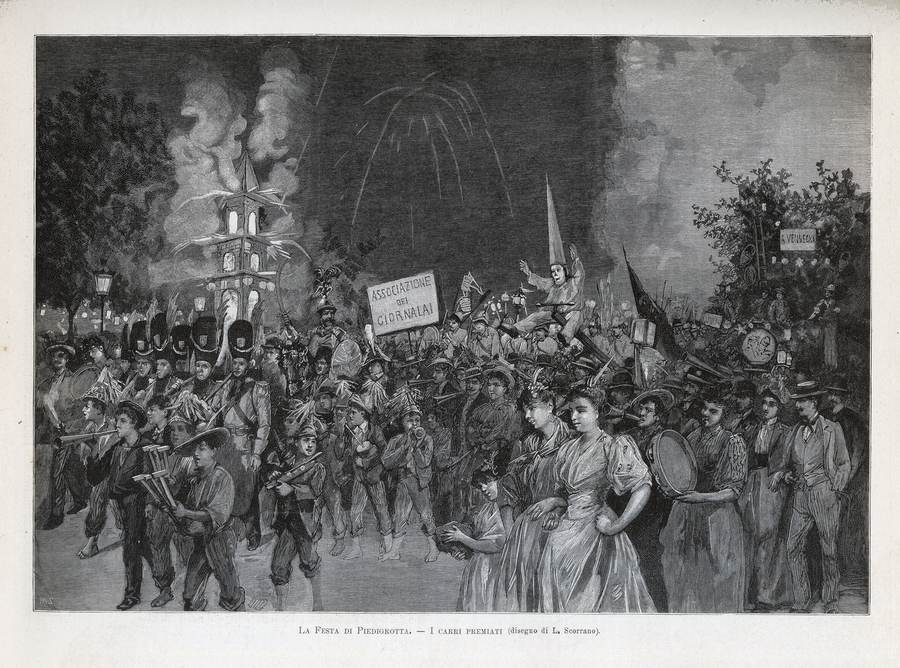 1894 - La Festa di Piedigrotta - I carri premiati (disegno di L. Scorrano), (M. S. inc.), L'Illustrazione Italiana, Milano, Anno XXI - 2° semestre, p. 201.