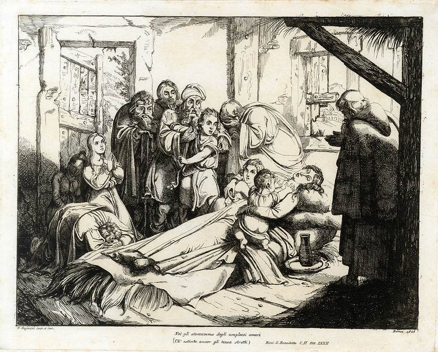 14 - Noi gli staccammo dagli amplessi amari…, Ricci S. Benedetto C. II. Ott. LXXII, (V. Gajassi inv. e inc. - Roma 1828).