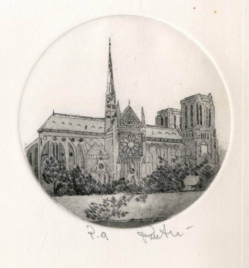 31 - Notre Dame de Paris. s.d., acquaforte, acquatinta, mm. 125 Ø, es. p.0., tir. 10 + 5 p.d.a..