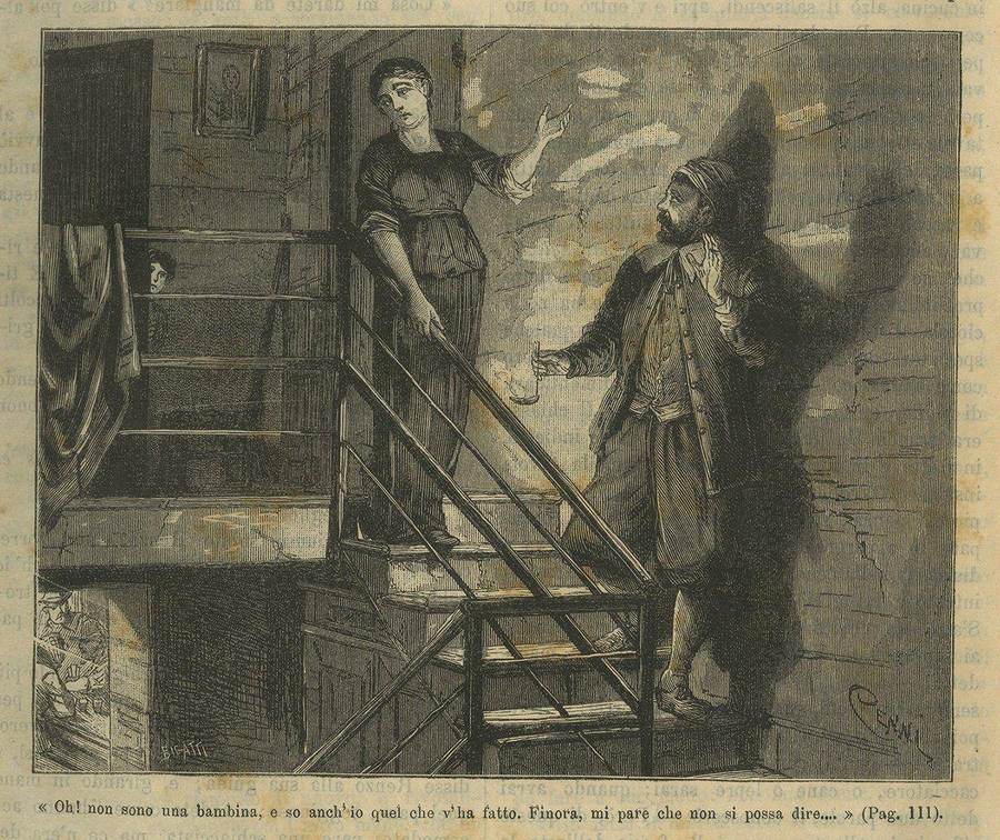 1881 - Alessandro Manzoni, I Promessi Sposi...., con illustrazioni di Quinto Cenni, Milano, F. Garbini Editore, pp. 9, 49, 57, 73, 97, 105, 129, 137, 145, 161, 169, 193, 201, 209, 265, 273, 281, 289. (opera pubblicata in 37 dispense).