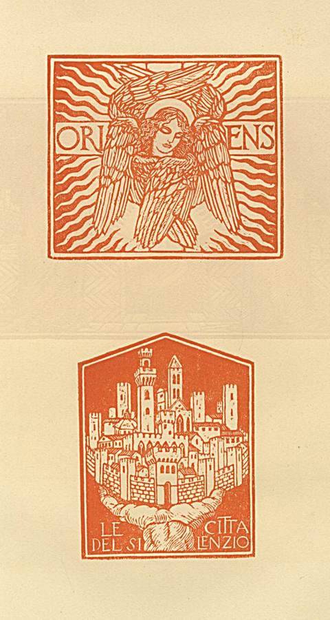 Nel 1929, Cesare Ratta, pubblica nel suo importante volume su “L’Incisione orignale su legno in Italia”, le xilografie originali per il volume di Gabriele D’Annunzio “Le Città del Silenzio: Due frontoni e iniziali, Illustrazione, Testata, Testata, Testata, Testata, Due finali.