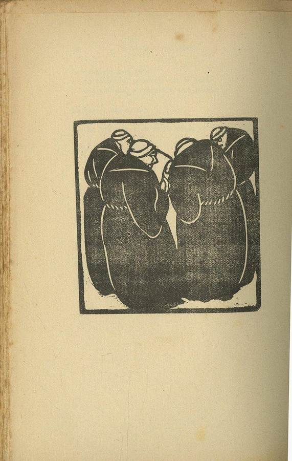 1915 - 150/164 -(15) Nel 1915 illustra con numerose xilografie il volume di Francesco Berni, Le Rime e la Catrina, A cura di Fernando Palazzi, con xilografie di Emilio Mantelli, edito da A: F. Formiggini a Genova, nella collana “Classici del Ridere (23). p. 134