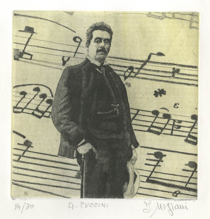 2024 - (cartella) - Impero Nigiani, “Giacomo Puccini”, 7 acqueforti originali, (Edi Grafica edizioni d’arte)