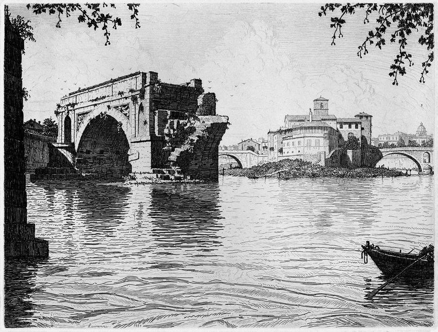 nell’inciso sotto a sinistra Laurenzi, 1931, a matita sotto a sinistra Laurenzi , a destra Roma, Isola Tiberina.