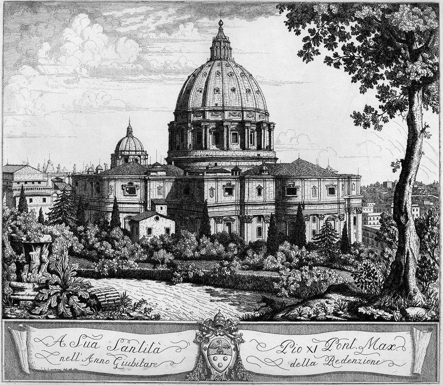 nell’inciso al centro 18 II 1934 inciso sotto A Sua Santità Pio XI Pont. Max. / nell’Anno Giubilare della Redenzione sotto a sinistra L. Laurenzi del. inc.,