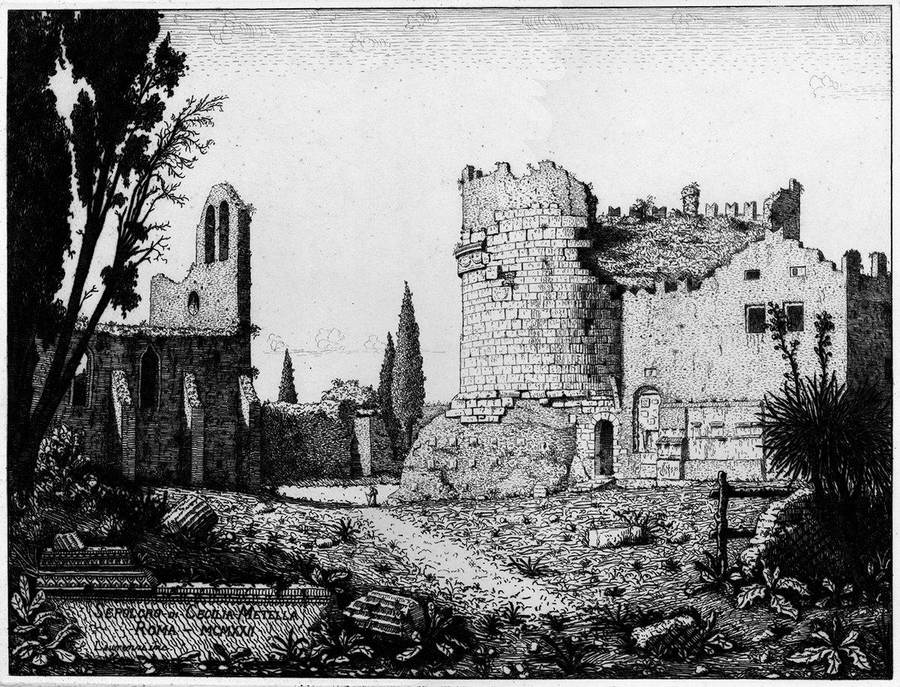 nell’inciso in basso a sinistra SEPOLCRO DI CECILIA METELLA / ROMA MCMXXII / Laurenzi - inc., a matita in basso a sinistra Laurenzi.