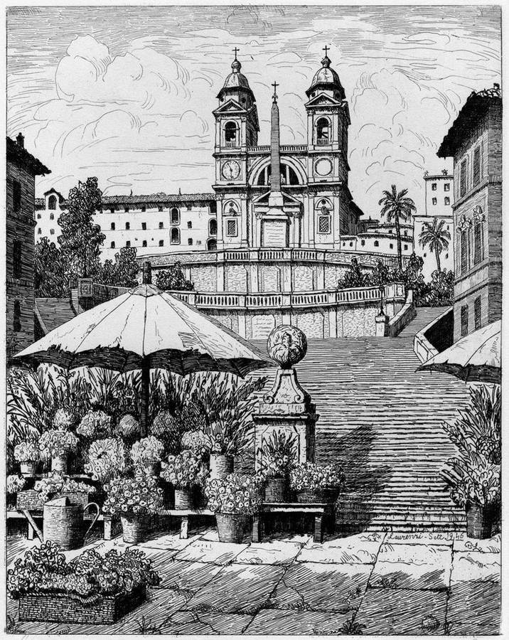 nell’inciso al centro Laurenzi - Sett. 1946 a matita sotto a sinistra Laurenzi , a destra Trinità dei Monti, Roma.