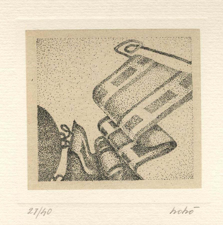 Le incisioni in 40 esemplari numerati da 1 a 40 in numeri arabi e, fuori cartella, su foglio unico, da I a XV in numeri romani, sono tirate dall’autore…, per le Edizioni Nuvolanera di Santacroce sull’Arno…, esemplare n. 27/40. mm. 65x70 su fondino