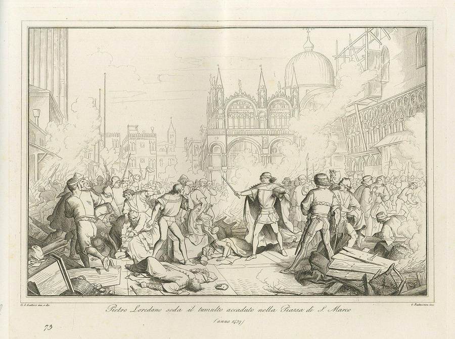 1863 - Storia Veneta espressa in centocinquanta tavole inventate e disegnate da Giuseppe Gatteri ...., incise da Antonio Viviani e dai migliori artisti veneziani, ed illustrate da Francesco Zanotto. Seconda Edizione. Venezia, Giuseppe Grimaldo tipografo e calcografo, tavv.: 36, 66, 68, 73, 74, 87, 95, 123, 124, 130, 134, 137, 142.