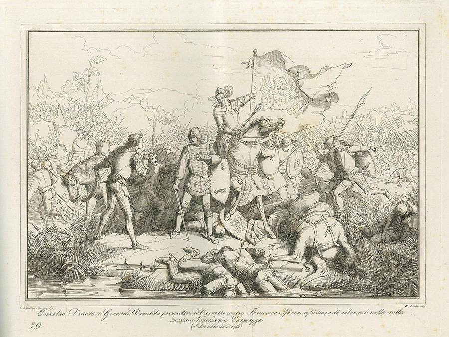 1863 - Storia Veneta espressa in centocinquanta tavole inventate e disegnate da Giuseppe Gatteri ...., incise da Antonio Viviani e dai migliori artisti veneziani, ed illustrate da Francesco Zanotto. Seconda Edizione. Venezia, Giuseppe Grimaldo tipografo e calcografo, tavv.: 70, 78, 80, 84, 85, 88, 89, 93, 99, 102, 104, 106, 111, 113, (108, 110, 116).