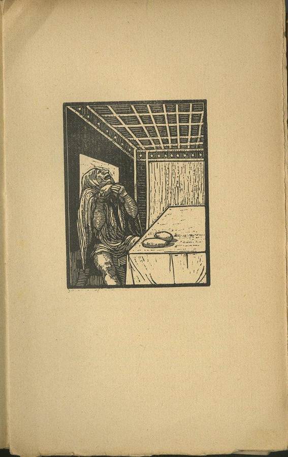 1913 - 8/60 - (53) Nel 1913 illustra con numerose xilografie il volume di Giovanni Boccacci,Il Decamerone, Pampinea - giornata prima, a cura di Ettore Cozzani, vol. I, Genova, A.F. Formiggini, xilografie di Emilio Mantelli. nella collana “Classici del Ridere (1)” p. 117