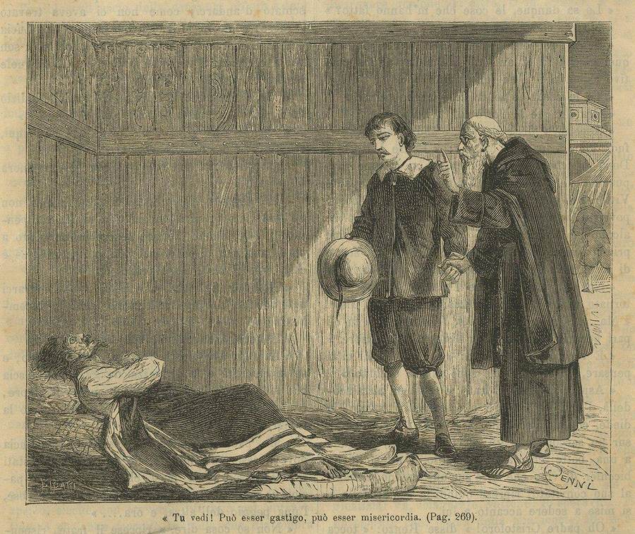 1881 - Alessandro Manzoni, I Promessi Sposi...., con illustrazioni di Quinto Cenni, Milano, F. Garbini Editore, pp. 9, 49, 57, 73, 97, 105, 129, 137, 145, 161, 169, 193, 201, 209, 265, 273, 281, 289. (opera pubblicata in 37 dispense).