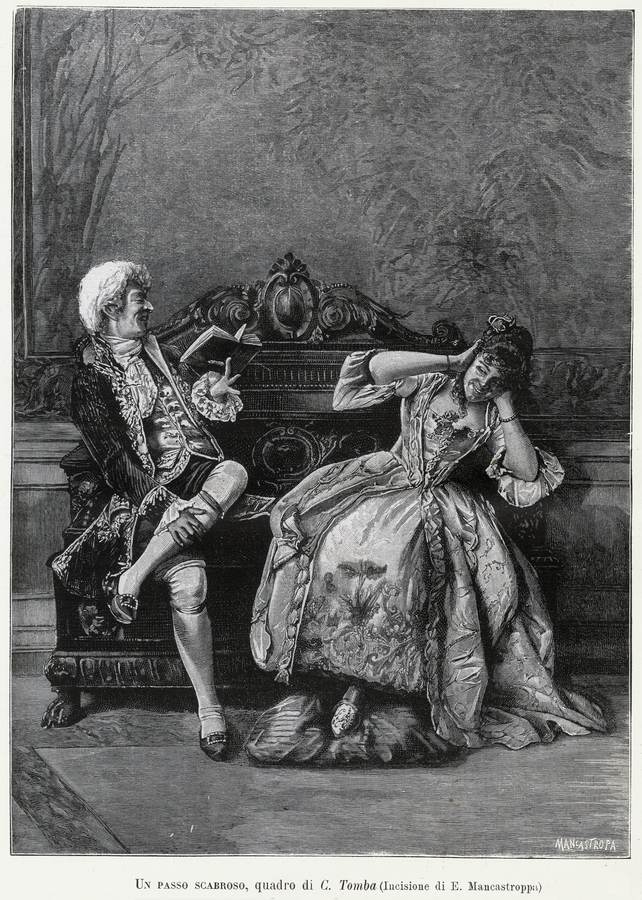 1891 - Un passo scabroso, quadro di C. Tomba (Incisione di E. Mancastroppa), L'Illustrazione Italiana, Milano, Anno XVIII - 1° semestre, p. 28.