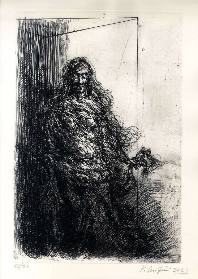 2024 - Vestale, 2024, acquaforte e puntasecca, mm. 395x270, Edizione in cartella ALI fuori commercio riservata ai Soci Sostenitori e ad Honorem, Bologna, ALI Associazione Liberi Incisori, Bologna, gennaio 2025, stampatore Agim Sako, tiratura 84 esemplari num. da 1/84 a 84/84, testo di Marzio Dall’Acqua, esemplare: 65/84.