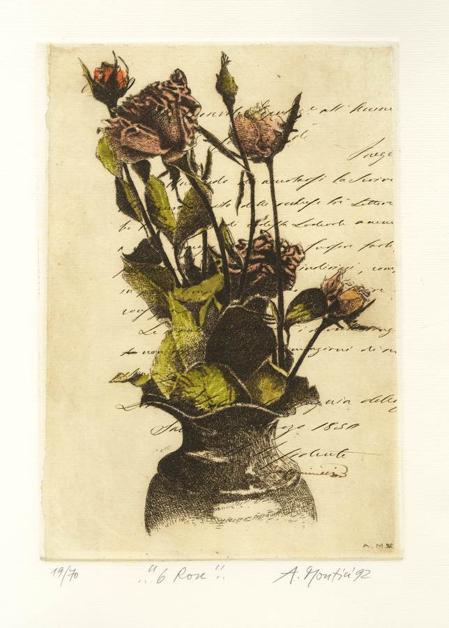 | Tecniche | acquaforte su fondino di carta antica manoscritta |