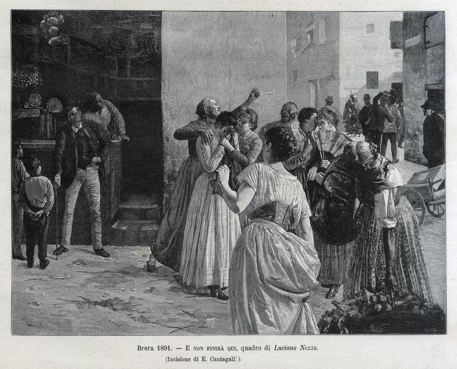 1891 - Brera 1891 - E non finirà qui, quadro di Luciano Nezzo (Cant), L'Illustrazione Italiana, Milano, Anno XVIII - 1° semestre, pp. 413 ill., 414.