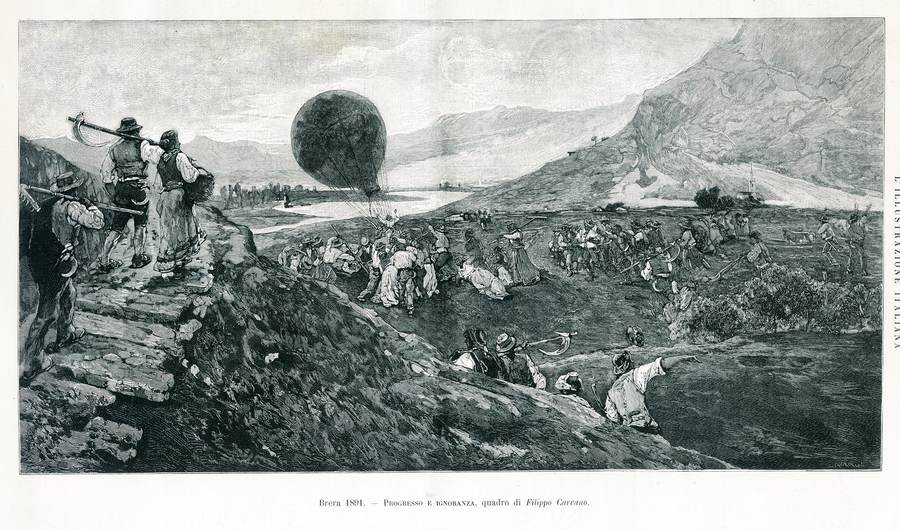 1891 - Brera 1891 - Progresso e ignoranza, quadro di Filippo Carcano (Cantagalli), L'Illustrazione Italiana, Milano, Anno XVIII - 1° semestre, pp. 337, 345 ill.