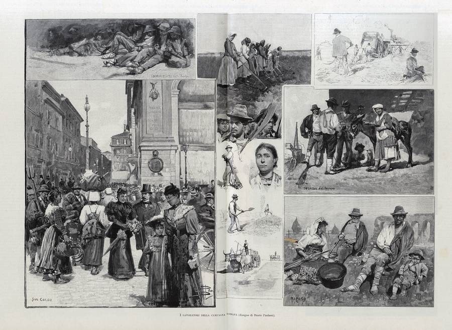 1894 - I lavoratori della campagna romana (disegno di Dante Paolocci) (Man. Sab. inc), L'Illustrazione Italiana, Milano, Anno XXI - 2° semestre, pp. 40/41.