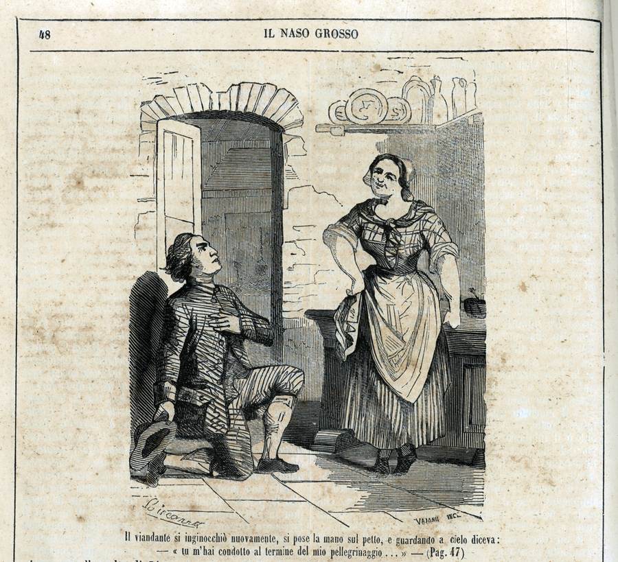 1853 - Slawkenbergius, Il naso grosso, (Pubblicato da Lorenzo Sterne) (traduzione di Carlo Bini), Torino, Società Editrice Italiana (M. G. C.), p. 48.