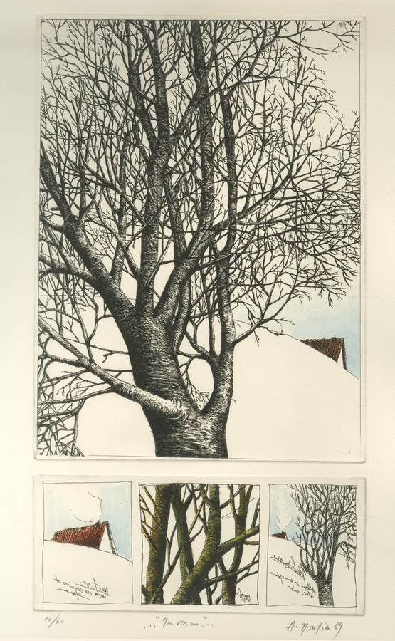 | Tecniche | acquaforte, acquerellata a mano dall'autore, 2 lastre |