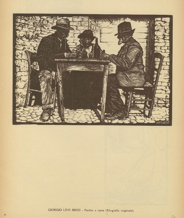 Partita a carte (sul retro xilografie originali di Publio Morbiducci: Il ferroviere, Veliero)
